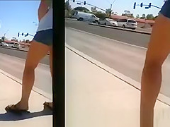 candid legal age teenager- legs at a bus stop