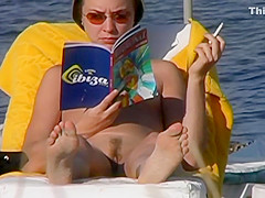 Concupiscent moist cookie of sunbathing beach gal  filmed