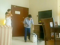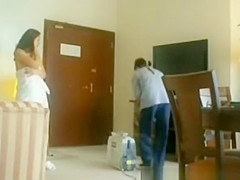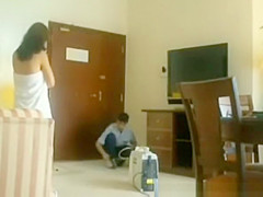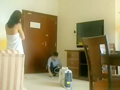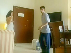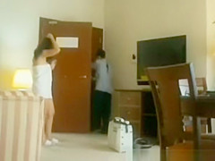Description: Wicked and exhibitionist gal flashes her hot puffy arse for hotel room cleaner lad