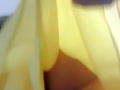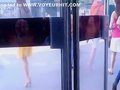 Tricky voyeur knew what this chab wanted and this guy didn't let this knee length of a yellow petticoat stop him. That Guy followed the gal and when they were on the moving stairs, the pont of time was right for him to lift the petticoat up and check her arse out. That Babe had a strap and glamorous gazoo cheeks upskirt.