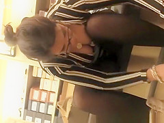 Breasty cutie in glasses down blouse and cleavage in the shoe store as that babe tries recent couple of shoes.
