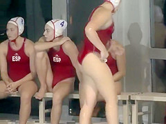 Those 2 waterpolo angels are replacement players during this match and they were sitting nervously with their eyes and the mind on the game. I starred at this hot beauty's crotch whilst that babe was sitting in that pose and I kept thinking how I could warm her up previous to that babe enters the game.