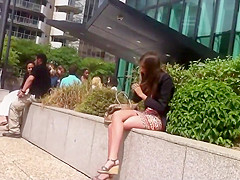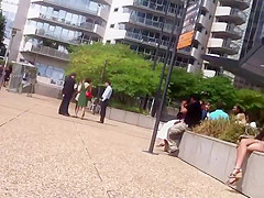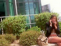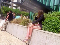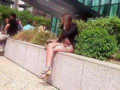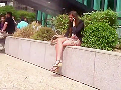 Voyeur was circling her like a vulture, desperately aiming for some upskirt peeks from betwixt these lengthy legs and into the short petticoat. This Babe was sitting on the wall and nervously talking to somebody. Incredible hotness, that's for sure.