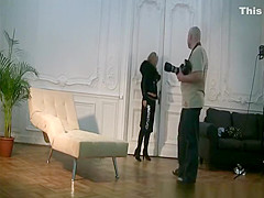 Spy livecam records two hawt model gals posing for the photographer's. Golden-Haired hawt model with astounding body posing exposed and ebon gal taking her garments and posing for the livecam.