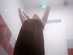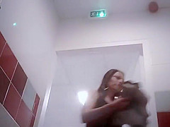 Hidden camera caught her in the workplace washroom as that babe popped in for a quick shower and change of clothing. Don't let that baggy tunic fool u into thinking this babe is slender. When this babe disrobes, u'll watch what kind of a bubble gazoo and large meatballs that babe's hiding beneath it.