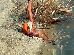 Nudist pair fucking by the water