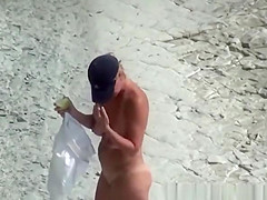 Aged beach jerk off