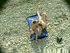 Nudist pair making 69 in the rocky beach sideways and hottie on top.