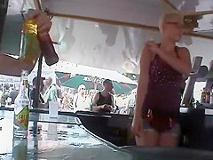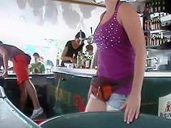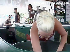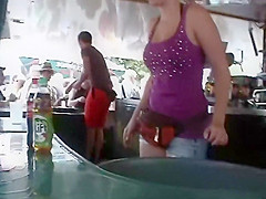 There was this large bowl of drinks and ice inside the bar and whenever somebody orders a gulp, this short haired breasty waitress had to bow down to dig in there. Needless to say, I swallowed a small in number just to check out her lovely large love melons in close proximity. Incredible valuable looks and a sexy voyeur catch of the day.