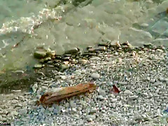 Concupiscent moist cookie of sunbathing beach gal  filmed