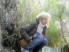Aged caught pissing outdoors next to tree