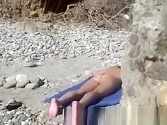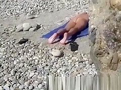 Stud film hawt honey on the beach and masturbate