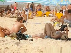Massive mounds sexy beauty in brown bikini playing racket tennis in the beach. This Babe has some large bouncing wobblers we could stare all they at 'em.