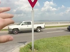 Breana in bitch gives face hole gagging bj in the outdoors