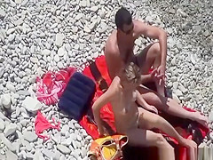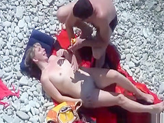 Tiny mambos nudist woman with his dude next to her fingering her cunt and getting on top of her.