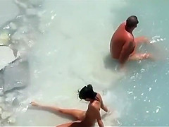 This pleasant woman was relaxing and sluggishly chilling on the beach, fully undressed in the company of her spouse. This Babe has a very fit body and petite melons and that babe lies down on the beach, whilst a voyeur films her whole in nature's garb body. That Babe even plays around a bit in the water.