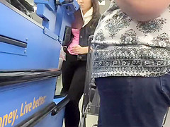 Fact that this babe has a quite worthy wazoo in tights and that this babe bought bananas has made my mind wander off to what this babe could do with the banana, other than eating it. This Babe looked a bit grumpy at the supermarket cashier and I wager my banana idea would make her smile.