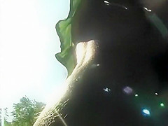 This hawt playgirl was standing super close to a concealed camera worn by a voyeur and surprisingly, it shown her wearing quite cute pants with little dots instead of some hawt belt to match that outfit.