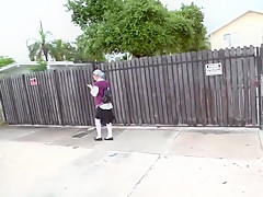 Breana in bitch gives face hole gagging bj in the ou...