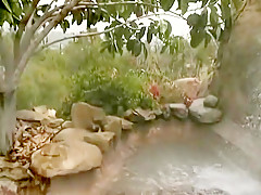 2 sexy girlfriends have sex outdoors