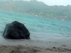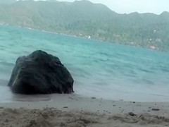 After a carnal copulating at the sandy beach, a juvenile and skinny bimbo had a stud fill her open throat with thick and white jizz which this babe drank.