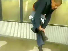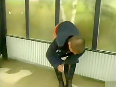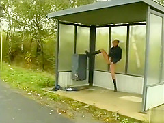 That Babe takes off her panties to expose her darksome pants and then her slit and the hotty with the bald head pees hard at the bus stop. Her bladder is very full and the pissing is enormous.