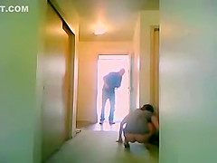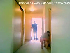That Babe answers the door in a top, but the dilettante hottie has no bottoms on as that babe receives the cash for the delivery boy. That Guy tries to acquire a priceless view of her arse and cum-hole as that babe grabs her specie.