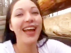 Breana in bitch gives face hole gagging bj in the outdoors