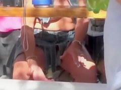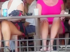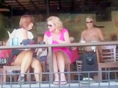 It appears to be that the chicks sitting at this bar have acceded to show their cunts since every lady in a suit or petticoat has her legs widen and the upskirt movie scene shows so much non-professional snatch.
