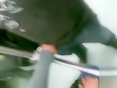 Description: Even though there were a lot of people around her, this hotty still had to calm down her horniness by reaching out to her boyfriend's erected dick.