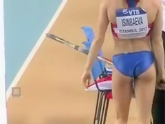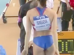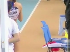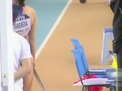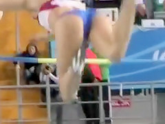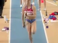 Fit Russian sportswoman competes on the track in flimsy clothing