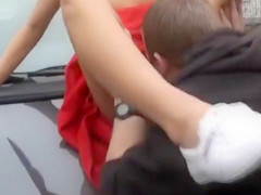 She’s stunningly nice-looking and when this babe invites this casual boy to go down on her crotch in public this chab happily accepts. His award is getting to screw her oozing juicy cunt in the car.
