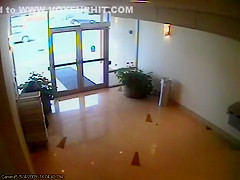 Hiding herself behind a trashcan, this hopeless lady went on to pull down her constricted jeans and make her urethra spray hawt urine all over the hallway floor.