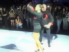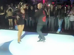 Latin pair dances in public for a large audience