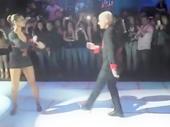They take the stage, that babe in a short suit and high heels, and put on a pleasant dance show in the movie. The way they move is fleshly and hot, and her outfit hugs her body in all the right ways.