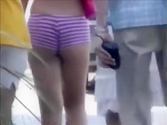 Wearing indeed taut shorts that disclosed her cameltoe and a short shirt, this smokin' sexy bombshell with large arse got caught on camera walking in public.