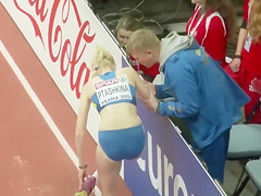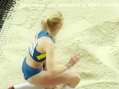 Preforming a lengthy jump at the built track, a sporty juvenile woman wore actually constricted shorts that accentuated each little curve of her perfectly round and firm butt cheeks.