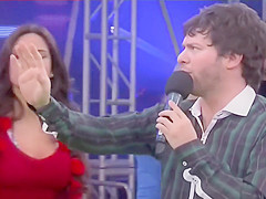 Brawny lady gets a massage live on the television