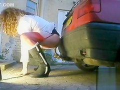 His car has a metal trailer hitch that’s phallic in shape so this convincing crossdresser sits his anal opening on it and makes a wicked solo anal episode, engulfing it clean of his juices after.