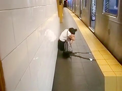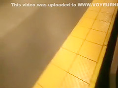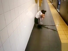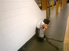 Not being able to contain her bladder any greater amount, this saucy moll wearing short darksome petticoat and a clean white shirt squatted down and peed hard in public.