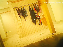 Hidden back in the darksome area of the locker room is a camera pointed at the showers. Chicks are filmed getting clean, getting clothed, and in one case washing every other.