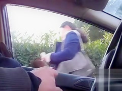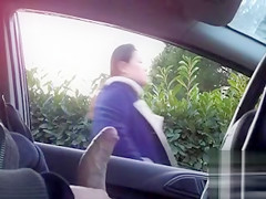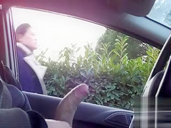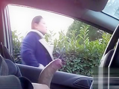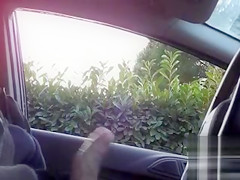 Sitting in a parked car and masturbating dick