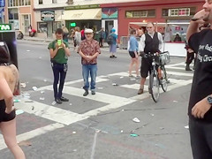 Dark tape overspread the nipps of a bespectacled serf as that babe gave the opportunity to random folks to experience what it's like to whip somebody.
