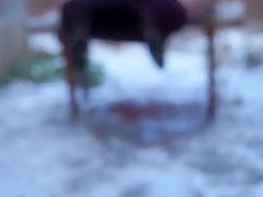 In the midst of the yard, a kinky big beautiful woman decided to undress out of her taut dark panties, bow over and make her orgasmic pink bawdy cleft spray pee all over the place.