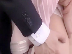 Japanese hotty in petticoat and hose groped on educate