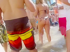 Having great time at the beach party, a luscious hotty was wearing a bikini that totally disclosed one as well as the other of her large gazoo cheeks, so I simply had to record her.