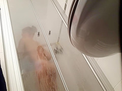 My foxy roomie jumps totally in nature's garb into the shower booth