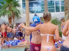 Smokin' sexy golden-haired bombshell has some enjoyment by the pool