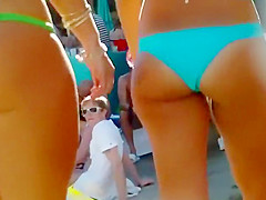 Enjoying the sunshine at the beach, foxy bitches had their biggest buns nude and filmed as they were walking around.