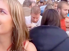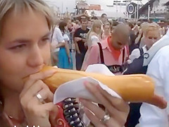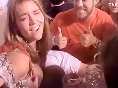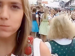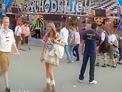 Large natural mangos almost fall out of her hawt top at Oktoberfest and this cutie is in the mood for nasty pleasure. This Babe urinates in public, flashes her butt, and gives a quick orall-service at the end of the movie scene.